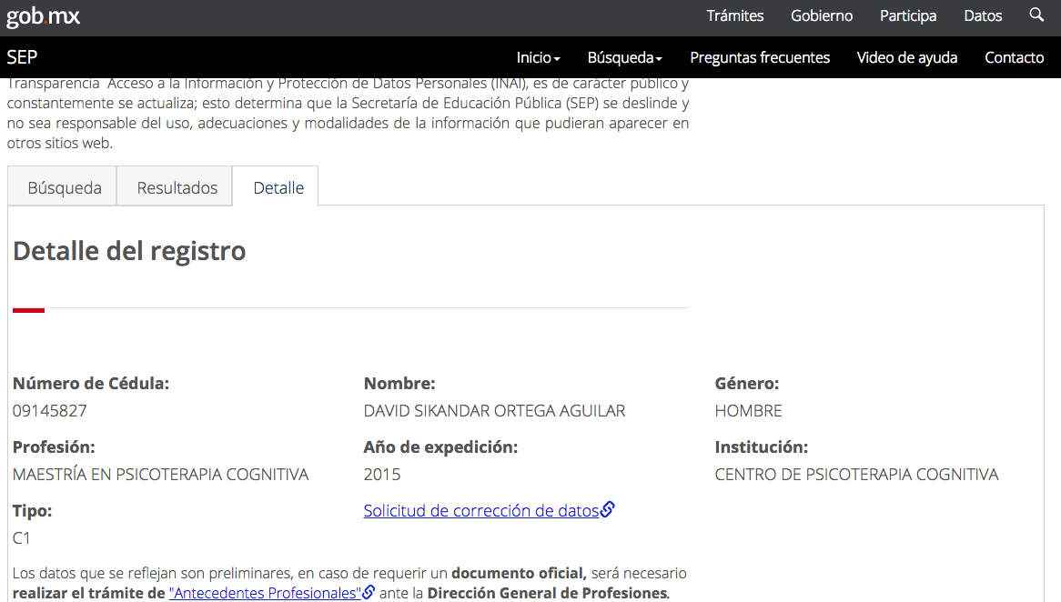 Para ver la cédula federal de algunos egresados entra a nuestra sección de egresados aquí También puede entrar a la página oficial Registro Nacional de Profesionistas